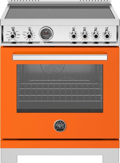 This 30” Induction range has 4 high-power heating zones with maximum power output of 3700W, Bridge Element, 4.6 cubic feet self-cleaning oven, dual convection fan, 7 shelf levels, digital gauge, temperature probe, telescopic glides, soft-close doors, air-frying mode. All Bertazzoni appliances are covered by a 2-year warranty.