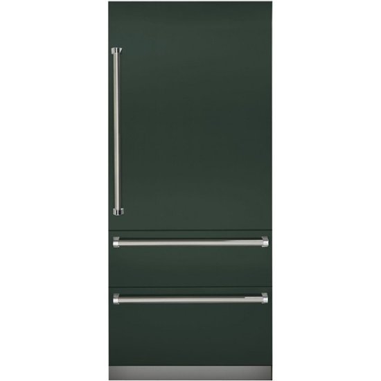 Add a touch of sophistication to your kitchen with this Blackforest Green Viking Professional 7 Series fully integrated bottom-freezer refrigerator. The two freezer drawers provide flexible storage options for ice cream and meats, and the digital interface offers smooth temperature control. This 36-inch Viking Professional 7 Series fully Integrated bottom-freezer features Spillproof Plus shelves for easy maintenance.